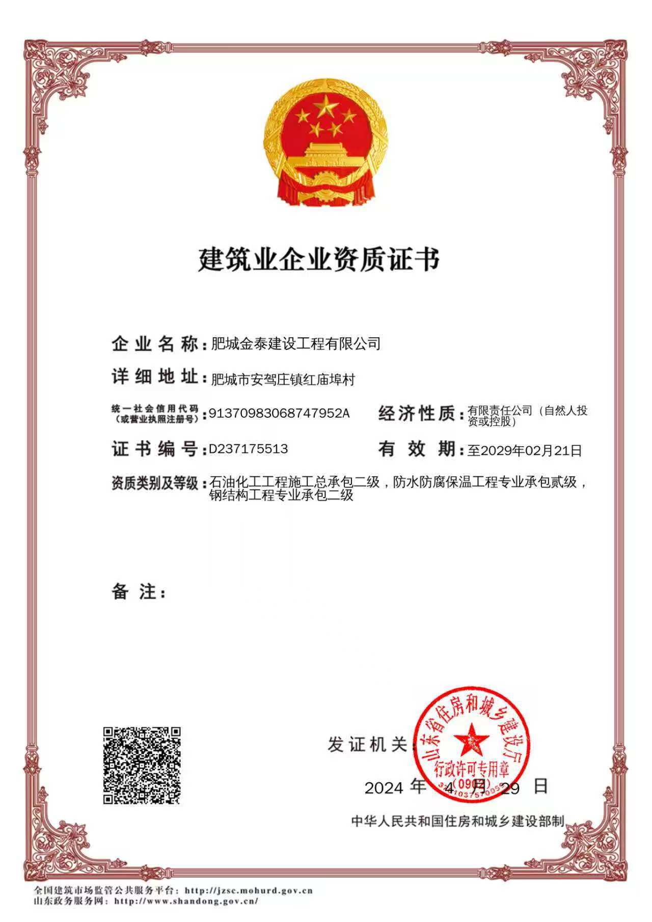 建筑业企业资质证书